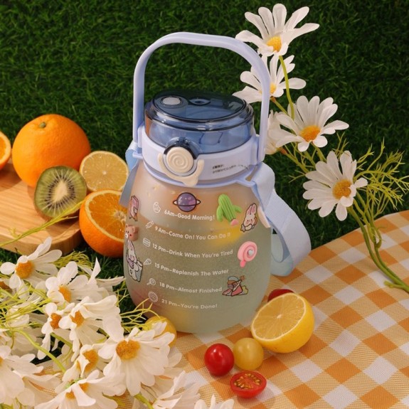 Bình đựng nước 1,2 Lít có ống hút khi bật nắp có tặng kèm sticker 3d dễ thương
