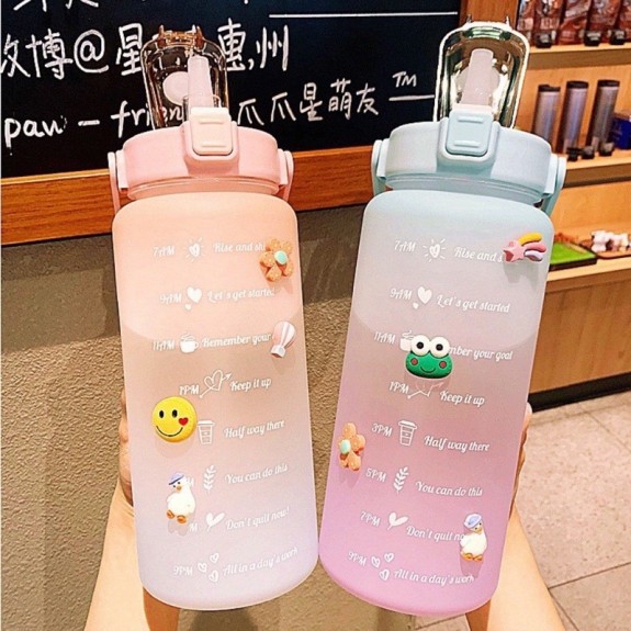 Bình đựng nước 2 lít chia vạch thời gian dành cho người bình nước 1 lít 600ml có chất liệu an toàn tiện lợi