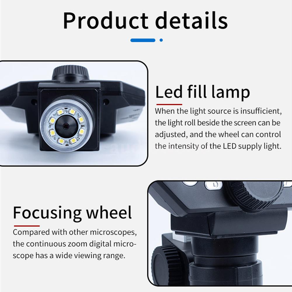 Kính hiển thị G1000 với màn hình LCD 4,3 inch có độ nét cao, giá đỡ có thể xoay để phù hợp với nhu cầu của bạn, trong khi ống kính hỗ trợ zoom đại liên tục 1-1000X.